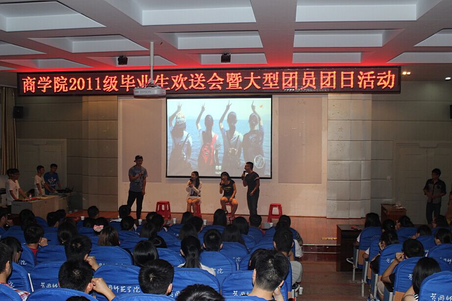 2015年5月28日晚,威廉希尔WilliamHill官方网站2011级毕业生欢送会暨大型团会顺利举行。威廉希尔WilliamHill官方网站党总支书记李月华、威廉希尔WilliamHill官方网站院长刘汉成、威廉希尔WilliamHill官方网站党总支副书记余晚霞、大四班主任和辅导员出席了此次活动。其他各院学生代表也送来祝福。