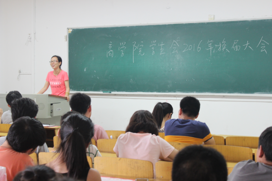 6月24日中午,威廉希尔WilliamHill官方网站2016年学生会换届大会在南区主教102教室举行。威廉希尔WilliamHill官方网站党总支副书记余晚霞,辅导员席帧、程惠、郑凯、杨亚玲、黄杰以及全体学生会成员参会。