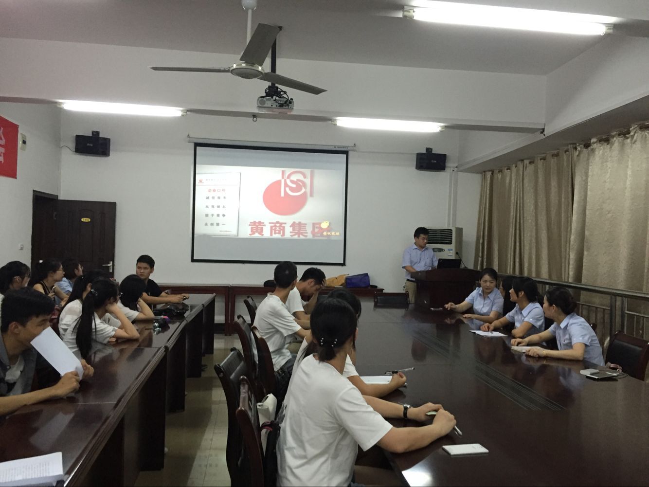 黄商集团首届大学生夏令营活动旨在为在校大学生提供一次“我是店长”的真实职场体验,对热爱零售业、了解零售行业、今后想从事零售行业的青年大学生提供一个学习与实践的机会,以及提供一个自我展示的成长平台。 针对此次活动,黄商集团人力资源部部长简单介绍了湖北黄商集团企业概况、发展规划,以及当前中国零售业的经济形势以及零售业的发展前景,并针对大学生就业形势进行了详细地分析,重点从就业地点、行业选择、择业时需要考量的因素等就业方面的问题进行了分享。现场还对大学生们提出的关于企业用人、择业就业以及大学生夏令营活动的开展及报名方式进行了解答。