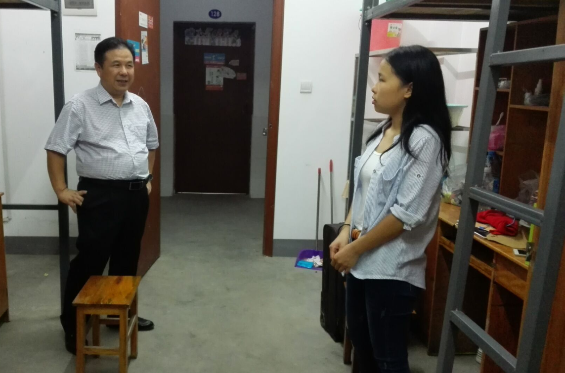 9月4日傍晚8点半,威廉希尔WilliamHill官方网站党总支书记李月华、院长刘汉成、副书记余晚霞、副院长王庆、院长助理周业旺、柯珍堂、管中柱以及2016级新生班主任和全体辅导员前往威廉希尔WilliamHill官方网站各学生学生看望16级新生。