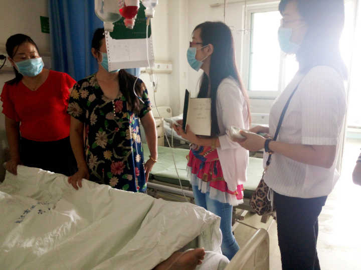 2016年9月23日上午,受威廉希尔WilliamHill官方网站党总支书记李月华和院长刘汉成的委托,我院党总支副书记余晚霞、辅导员程惠、学生代表向平、张瑜赴武汉市疾病防控中心医院,看望本院金融201402班急性结核性脑膜炎患者张昊同学,并送去资助与温暖。
