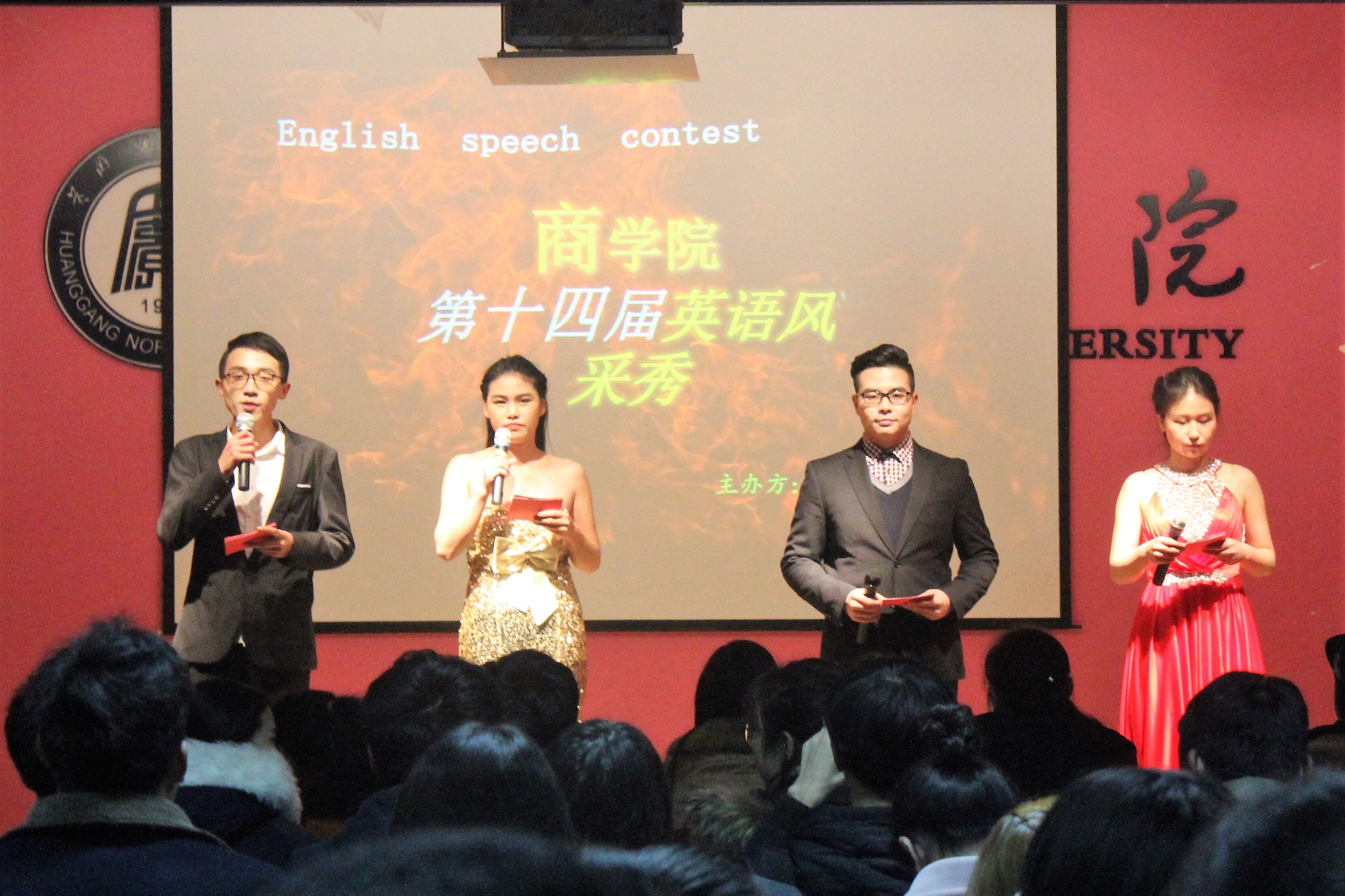 2016年11月24日晚7:00威廉希尔WilliamHill官方网站于北区科技大楼3楼多功能会议室举行威廉希尔WilliamHill官方网站第十四届英语风采秀决赛。威廉希尔WilliamHill官方网站党总支副书记余晚霞老师、威廉希尔WilliamHill官方网站团总支书记席桢老师、外国语学院外教Hannes、Kiki、张凌老师、黄师电台代表吴新兰以及第十三届英语风采秀冠军袁晓琴,担任本次比赛评委。