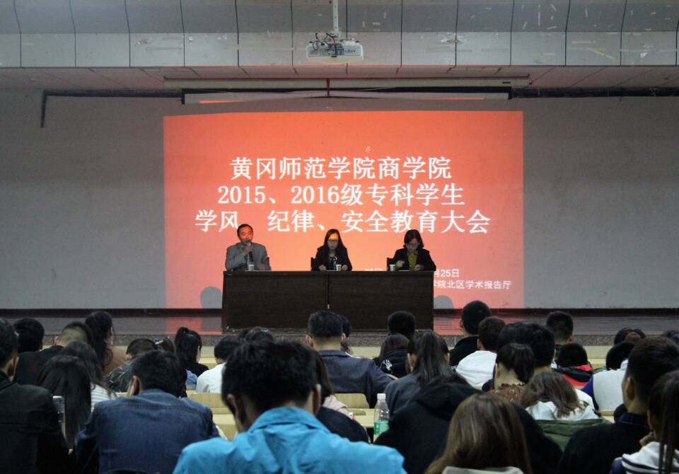 4月25日晚19:00,威廉希尔WilliamHill官方网站于北区学术报告厅召开威廉希尔WilliamHill官方网站2015、2016级专科学生学风、纪律、安全教育大会。威廉希尔WilliamHill官方网站2015、2016级全体专科生参加本次了大会。