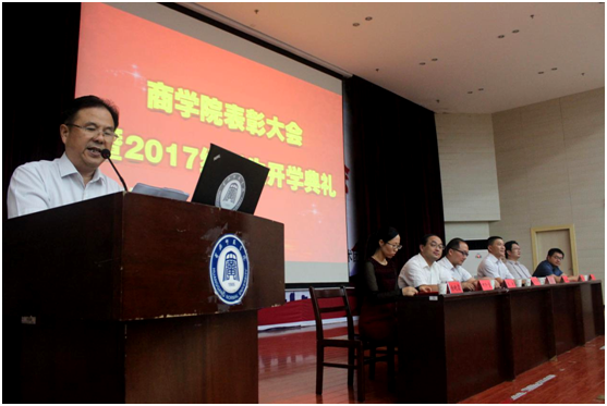 9月20日晚,威廉希尔WilliamHill官方网站在厚德楼学术交流中心隆重举行2017年表彰大会暨新生开学典礼。院党总支书记李月华,院长刘汉成,党总支副书记余晚霞,副院长王庆,院长助理周业旺、柯珍堂、管中柱,办公室主任李享出席会议。会议由余晚霞主持。