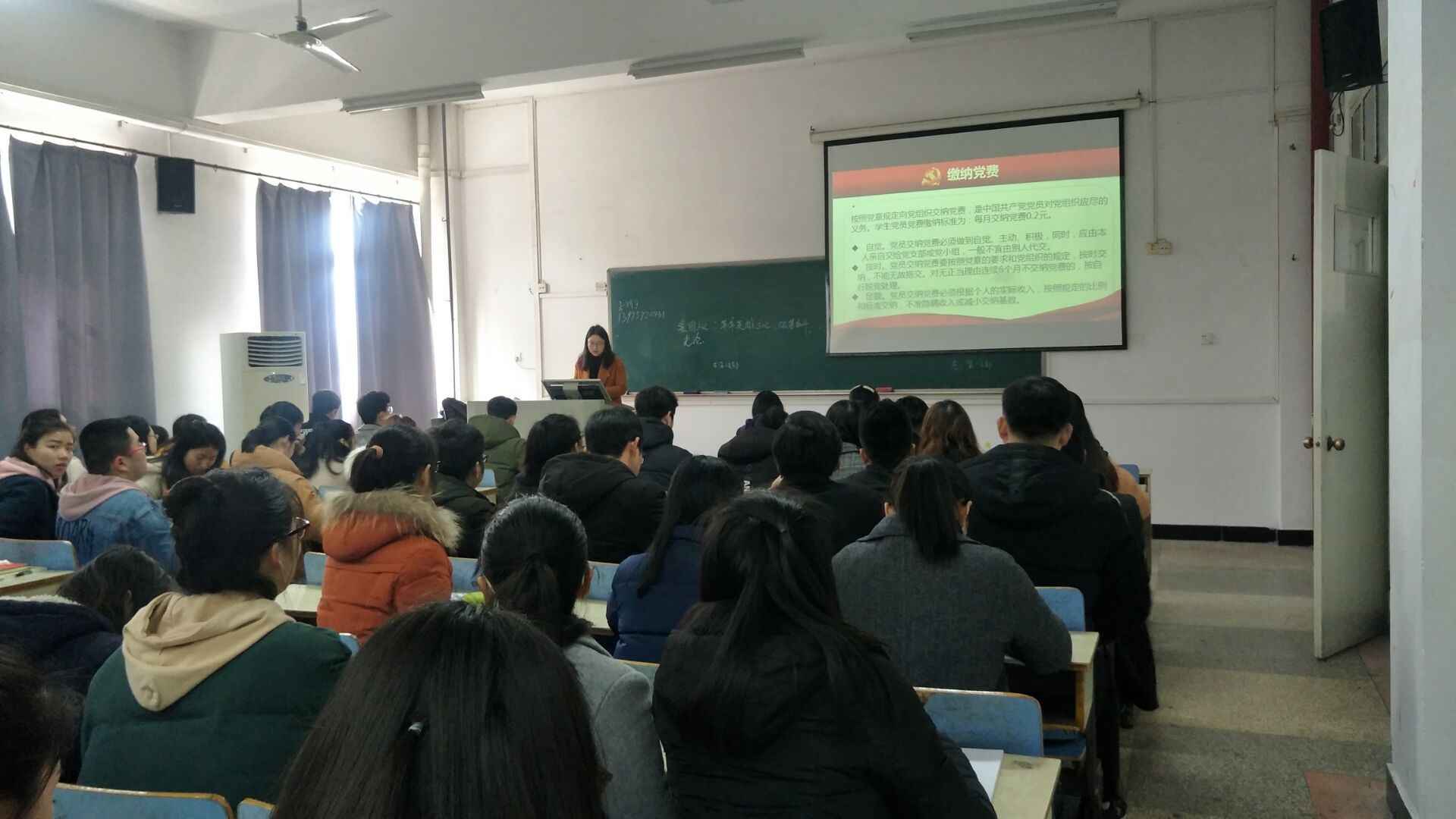 2018年3月9日中午12时,根据校党委组织部的统一部署和威廉希尔WilliamHill官方网站党总支的要求,威廉希尔WilliamHill官方网站学生党支部书记席桢、程惠以及54名在校学生党员在博学楼104教室开展了2-3月支部主题党日活动。