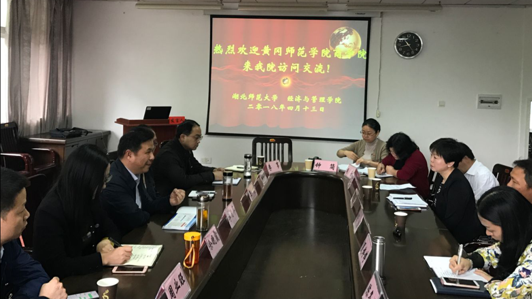 为了加强交流、相互学习、取长补短、共同提高,4月13日上午威廉希尔WilliamHill官方网站党总支书记李月华教授率领学院部分班子成员一行六人赴湖北师范大学经济与管理学院交流访问。湖北师范大学经济与管理学院党总支书记李涛、副书记夏婷婷、副院长聂亚珍及各系部负责人参加了交流活动。