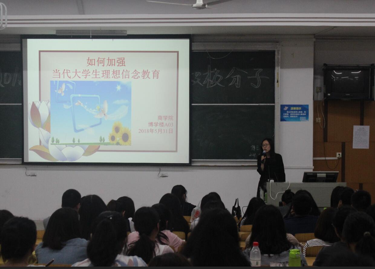 2018年5月31日晚,结合学院党风廉政建设月有关活动安排,威廉希尔WilliamHill官方网站党总支副书记余晚霞在博学楼A03给全体入党积极分子和学生干部讲授了一场理想信念方面的党课。