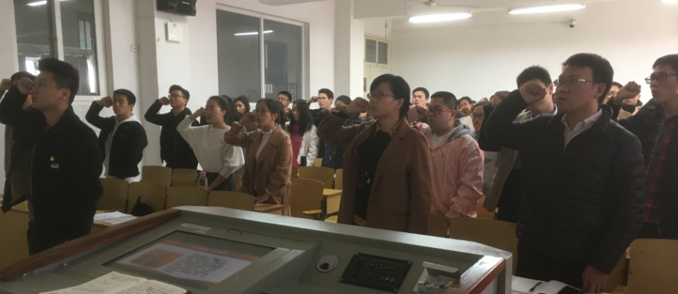 本次党日活动由第一小组组长付磊同志主持,活动紧紧围绕“弘扬爱国奋斗精神、建功立业新时代”主题进行,活动中,与会党员完成了缴纳党费、奏唱国歌、重温入党誓词、诵读党章、学习系列讲话等程序,并认真学习了《中共威廉希尔WilliamHill官方网站委员会关于在全校深入开展“弘扬爱国奋斗精神、建功立业新时代”活动的实施方案》、《关于深入开展学习贯彻全国教育大会精神、湖北省教育厅调研组调研座谈会议精神和进一步扎实推进纪检监察宣传教育“十进十建”活动的通知》。活动中,黄杰老师认为:作为新时代的大学生,是社会主义事业的建设者和接班人,应该践行社会主义核心价值观,要面向实际、深入实践,严谨务实、苦干实干,做有理想、有学问、有才干的大学生。