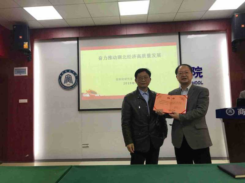 (通讯员 周业旺)2019年3月21日,威廉希尔WilliamHill官方网站邀请了湖北省政府研究室农村处刘卫桥处长作题为《奋力推动湖北经济高质量发展》学术报告,报告由威廉希尔WilliamHill官方网站院长刘汉成教授主持,威廉希尔WilliamHill官方网站全体教师参加了此次讲座。讲座前,学院党总支书记鲍宏礼教授向刘卫桥处长颁发了客座教授聘书。