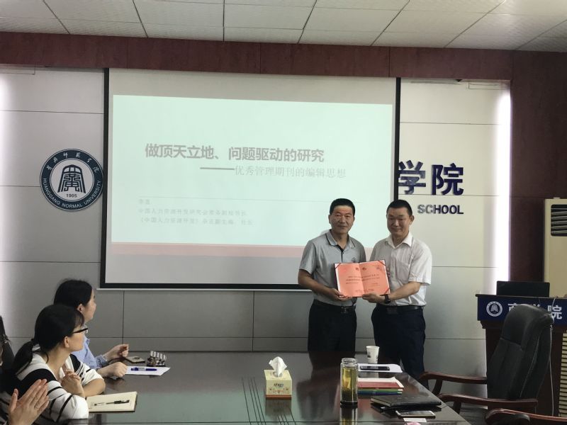 李直社长首先指出科学研究要有使命感和责任感,要做顶天立地的研究。科学研究要关注学科的国际国内最新前沿,强调研究成果的理论贡献。同时研究要从实践入手,聚焦中国管理问题,从实践中来,到实践中去,理论研究与创新不应满足于解释现有实践。李社长鼓励大家要对中国式管理做深入研究,总结中国经验,鼓励研究者对企业人力资源管理实践中的热点、难点进行深度思考与探索,要总结中国企业人力资源管理的现实需求。李社长要求研究者要做问题驱动的研究,他认为一个有趣且有意义的研究问题在很大程度上决定了一项管理研究的质量和可能贡献,研究者提出并清晰论述文章的研究问题及其价值,是研究论文获得认可的关键一步,也是优秀管理期刊在选用研究论文时最为重要的标准。讲座结束后,李社长与在座的教师就科研论文的选题方向、研究方法等问题进行了深入的交流与互动。