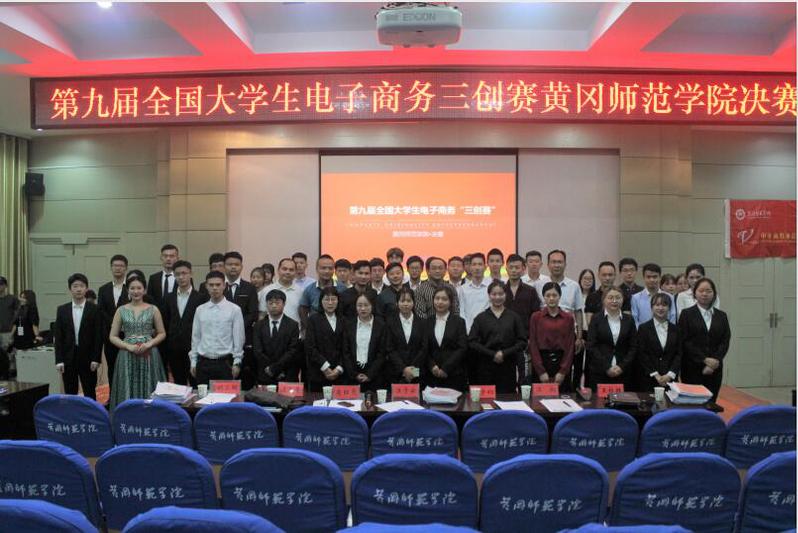 2019年5月10日晚18:30,第九届全国大学生电子商务三创赛黄冈师范学院选拔赛决赛于B03学术报告厅举行。威廉希尔WilliamHill官方网站副院长柯珍堂老师、威廉希尔WilliamHill官方网站周海琼老师、纪关心老师、威廉希尔WilliamHill官方网站学生会16级实践部部长葛伟锋以及部分大一学生共同观看了本次比赛。担任此次大赛的评委有黄冈市青年人才创新发展联合会会长以及湖北省城建设计院股份有限公司黄冈分公司执行总经理汪子云先生、湖北永业行集团黄冈分公司总经理徐宇初先生、黄冈东科创星企业管理有限公司副总经理肖红亮先生、湖北邻家购智能科技股份有限公司总经理汪流奇先生、湖北农夫电子商务股份有限公司总经理汪翔先生、湖北微媒网络科技有限公司总经理王桂超先生、北京绿色家装饰黄冈分公司邹总经理。