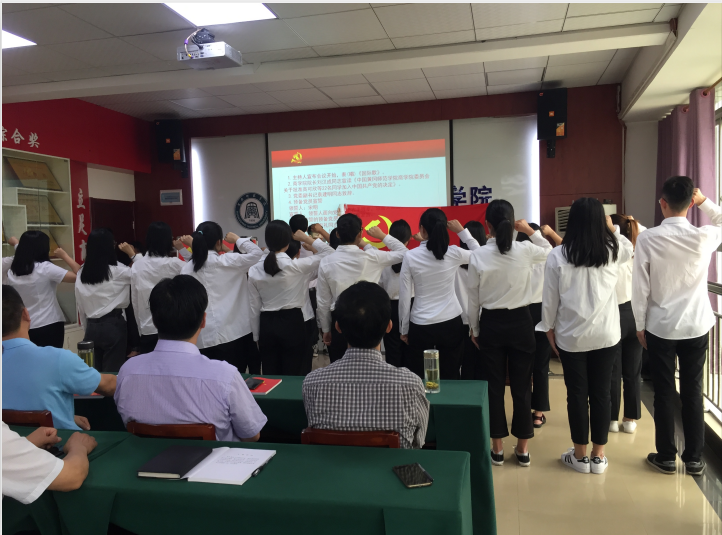 6月13日下午15:00,我院在致远楼704会议室召开了隆重而庄严的预备党员入党宣誓会议。学院党委全体班子成员、学生各党支部书记及学生党员、上半年新发展的预备党员及入党积极分子代表共90余人参加了此次会议,会议由学院党委副书记袁建明同志主持。