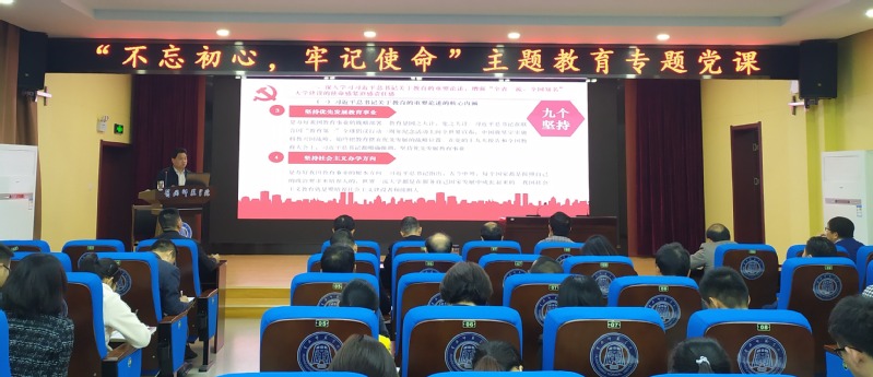 根据学校“不忘初心、牢记使命”主题教育工作部署安排,11月12日晚7点,校党委副书记、校长陈向军在北区报告厅为威廉希尔WilliamHill官方网站党员教师讲授了一堂题为“奋力推进‘全省一流、全国知名’大学建设”的专题党课,威廉希尔WilliamHill官方网站班子成员,教师党员聆听了本次党课。