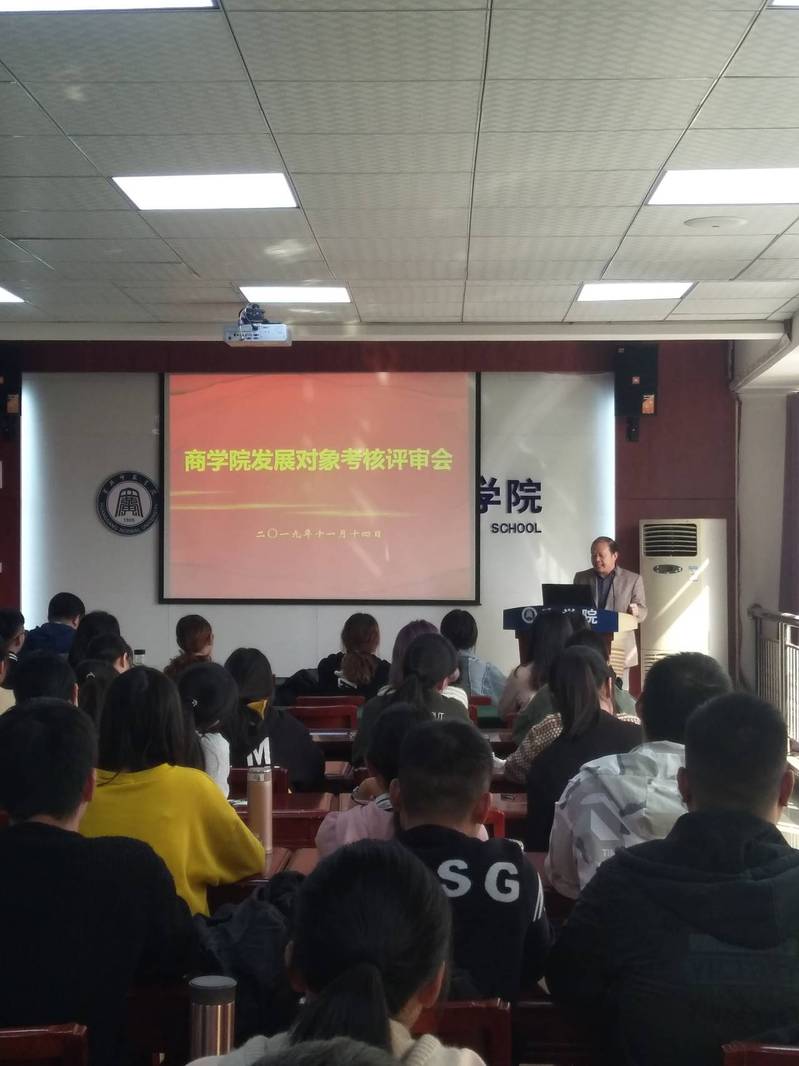 11月14日下午,为确保威廉希尔WilliamHill官方网站发展对象确定工作的规范有序,公平、公正、公开,根据《威廉希尔WilliamHill官方网站党委2019年下半年发展对象确定实施方案》的具体安排,威廉希尔WilliamHill官方网站学生党支部在致远楼704会议室,召开了确定发展对象考核评审会。威廉希尔WilliamHill官方网站党委副书记袁建明、组织员阙庆喜、学生各支部委员、辅导员等确定发展对象领导小组成员及学生党支部拟发展对象72人参与会议。会议由负责学生党务工作的辅导员程惠主持。