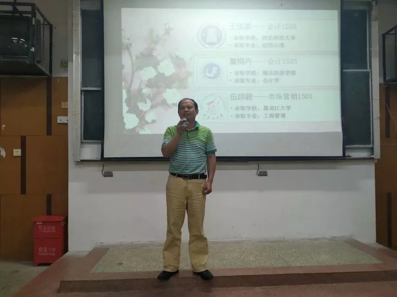 本次交流会由学习部干事肖文丹主持。会议开场,袁建明老师讲话,他对本届考研学生所取得的优异成绩给予了高度的肯定,表示深切的祝贺,并对当下的考研形势进行了直观的分析,鼓励同学们努力学习,积极备考。紧接着,在本届考研中取得优异成绩的付磊、王佳豪、孙畅、詹梅卉、伍翊君五名同学依次上台进行自我介绍并分享考研经验。
