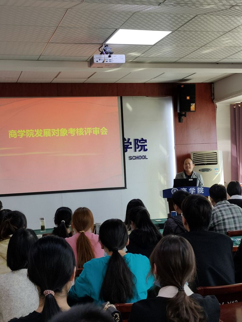 会议伊始,高可欣首先强调了与会纪律,并简要介绍了此次会议的流程。紧接着院党委副书记袁建明从政治觉悟、入党动机和发展过程这三个方面进行讲述,并激励各位入党积极分子提高认识,深刻从思想上剖析自我,不断学习,更新自己的知识储备。然后,组织员阙庆喜讲解了党员的初心和使命,勉励发展对象们无论何时,都要保持初心不变,在不断的发展中,为党和国家的事业奉献自己的一份力量。随后,评审正式开始,共计57名符合发展条件的入党积极分子,作为拟发展对象依次在讲台上发言。他们从入党动机、思想动态、学习工作、社会实践和志愿服务等方面进行了介绍。最后,院党委副书记袁建明做了总结性发言,强调不论发展结果如何,希望大家能够“不忘初心,牢记使命”。励志学习,不断提高自身能力,坚持下去,最终一定会成功实现目标。会议结束,结合57人的思想表现、政治素质、现实表现等三个方面的量化考核,经确定发展对象工作领导小组讨论决定,共有28人被确定为本批次发展对象。
