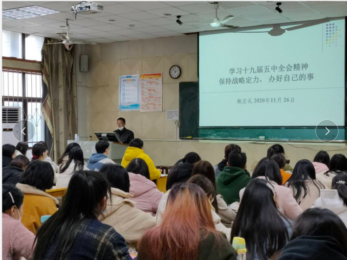 鲍宏礼书记结合十九大五中全会会议精神,以“两个一百年”作为切入点,围绕“新目标、新征程、新格局、新要求“四个方面的内容,由浅入深向学员们展开讲授。他指出,从“全面建成小康社会”到“建成富强、民主、文明、和谐、美丽的社会主义现代化强国”这一阶梯性跨越正是中国发展的要求和趋势,中国的“现代化”更加富有内涵,更强调物质文明和精神文明的相互协调。而中华民族要实现伟大复兴,作为一名学生,首先是要做好自己的事,鲍宏礼书记特别强调:一、课堂上全神贯注的听讲,学习不能放松,同时更要研究、践行;二、危机意识不能放松,增强机遇意识和风险意识;三、斗争精神不能放松;四、纪律规矩意识不能放松;五、责任担当不能放松。