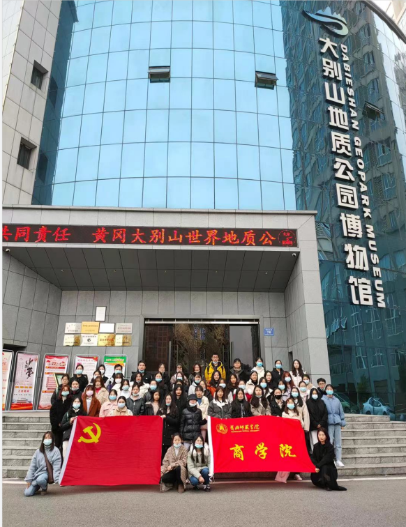 在黄冈市大别山地质博物馆前,学生党支部组织第一期入党积极分子培训班全体学员举行合影留念。