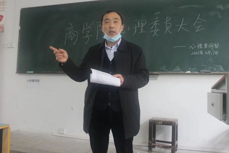 会议伊始,汪继东老师发言。首先他强调了心理委员在班级的重要作用,他认为心理委员是心理健康教育的主力军,应能充分认识到自己所扮演的角色,做好同学心理变化的观察员。汪老师反映,虽然目前威廉希尔WilliamHill官方网站心理委员工作开展得较好,但仍存在班级心理情况反应不及时,不到位的现象,他要求各心理委员应主动学习心理健康方面的知识,以便在工作中更好的观察同学们的心理变化,同时,也要建立起报告反馈制度,一方面帮助同学们提高心理健康知识水平,另一方面能针对不能解决的心理健康问题及时报告反馈。