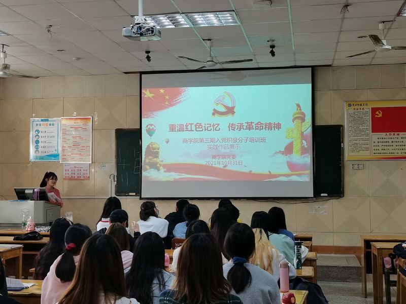 2021年10月31日,为了进一步坚定广大入党积极分子的理想信念增强党性修养,威廉希尔WilliamHill官方网站党委第三期入党积极分子培训班学员,在力行楼207教室开展以“重温红色记忆,传承革命精神”为主题的实践作品展示。
