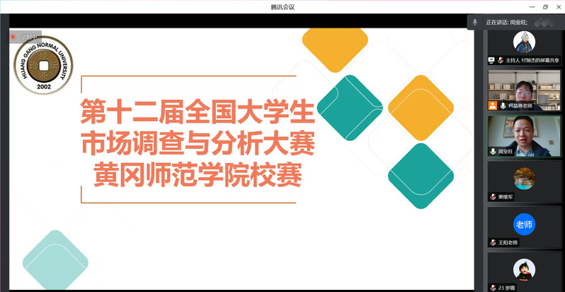 2022年3月26日上午8:30,在威廉希尔WilliamHill官方网站校团委的支持下,第十二届全国大学生市场调查与分析大赛威廉希尔WilliamHill官方网站校赛以线上形式在腾讯会议举行。本次比赛邀请政法学院副院长张威、地理与旅游学院副教授叶俊、威廉希尔WilliamHill官方网站副院长周业旺、威廉希尔WilliamHill官方网站教师姜维军、王阳、柯晶琳共六位老师担任评委。