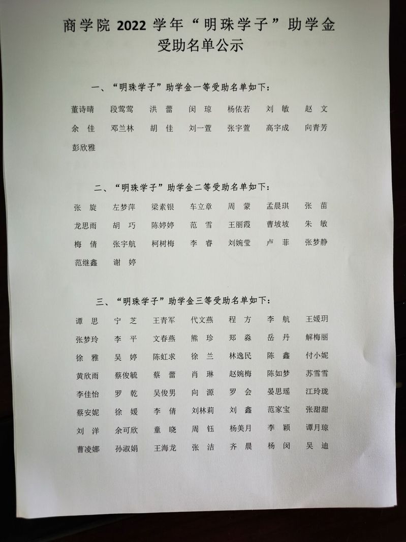 威廉希尔WilliamHill官方网站“明珠学子”助学金评审是一项严肃的工作。为增强评审工作的规范性,确保威廉希尔WilliamHill官方网站评审工作的公平、公正、公开,根据校学生资助中心要求,现将获助者名单公示如下: