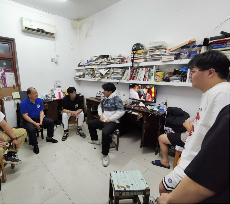 5月18日晚20时许,商院党总支副书记袁建明带领辅导员、部分学生干部代表,到学生会宿舍走访看望2018届毕业学生,为全体毕业生送去了离校前最真挚的关怀与祝福。