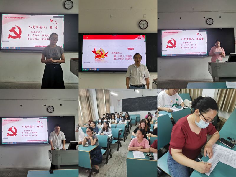 最后各党支部书记进行总结发言。其中第四党支部书记何秀平做如下发言,她表达了对接收为预备党员的同志们的祝贺,并希望他们继续保持初心不变,继续学习党的理论知识,发挥党员先锋模范作用,希望他们“平时看得出是一名党员,危难时刻更能挺身而出”。更是对第四支部特别提出,希望四支部担当起考研先锋模范的作用,以学风促党建,真正做到一名共产党员的带头作用。