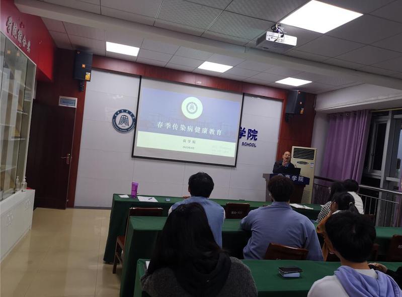 其次,袁书记十分牵挂同学们的身体健康,针对春季传染病健康教育做出报告,提醒众学子预防现如今的甲流,做到宿舍通风,做好防护措施。