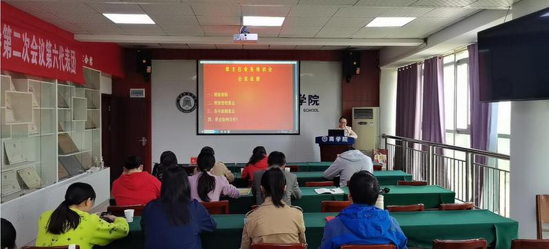 会上,学生事务办公室主任侯晓文结合自己从事辅导员和班主任的工作经历,从校、院学生会组织结构及功能的角度,仔细讲解了班级每一名班干部的职责以及应该起到的作用,强调了班干部培养的重要性,从大一到大四每个年级学生的特点着手,班主任应该分别从习惯养成、职业生涯规划、政治发展、学科竞赛、考研考公以及就业等作为抓手去管理学生。