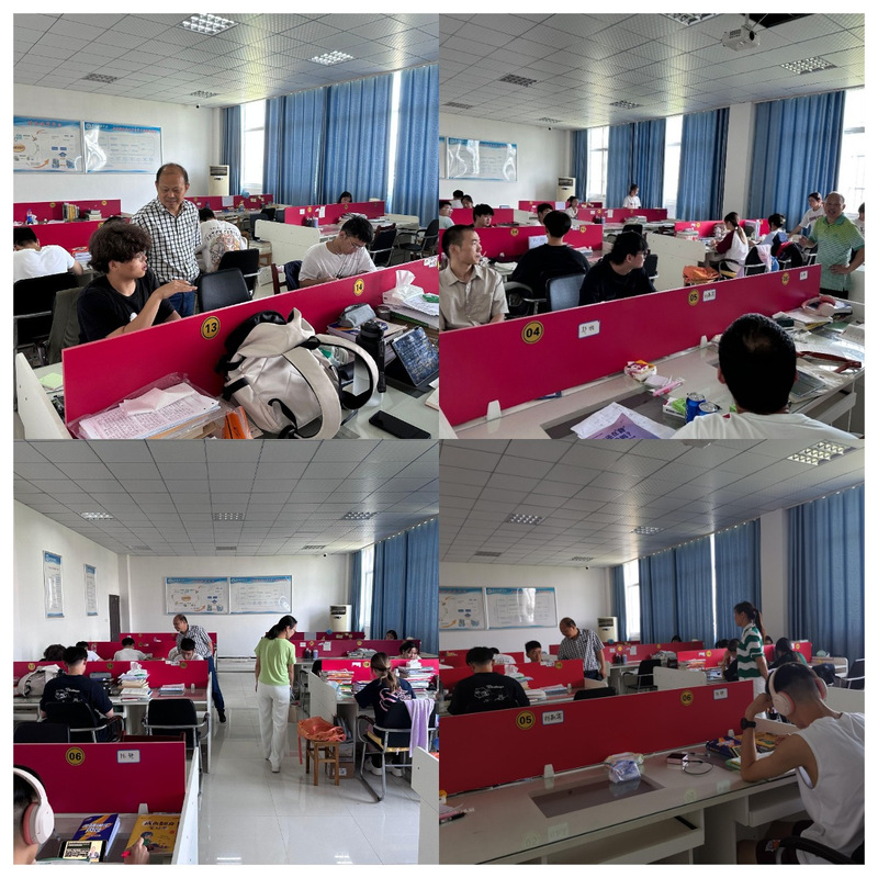 袁建明在自习室内对学生进行了慰问及讲话,激励同学们坚定考研信心,希望同学们能够不焦虑、不放弃,并根据自己多年的学生工作经验为学生指明八月应完成哪些内容;同时,袁建明提出希望同学们能够大胆的与老师进行沟通,借助老师的经验帮助学生明确方向、确定合适的学校。