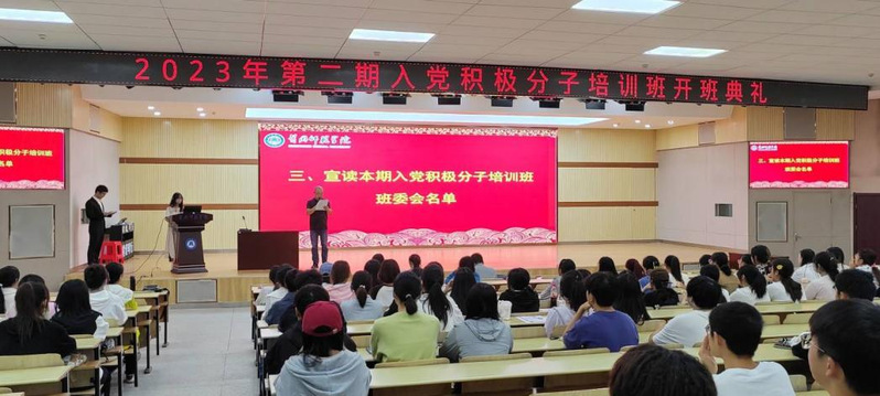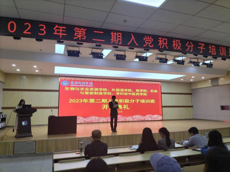 9月22日,威廉希尔WilliamHill官方网站和生物与农业资源学院、外国语学院、机电与智能制造学院、李时珍中医药学院在北区报告厅联合举行2023年下半年入党积极分子培训班开班典礼。出席本次典礼的有生物与农业资源学院党委书记闵艳林、外国语学院学生第一党支部书记汪晖、威廉希尔WilliamHill官方网站学生第四支部书记何秀平、李时珍中医药学院党务干事黄健。本次典礼由生物与农业资源学院学生第一党支部书记陈振中主持。