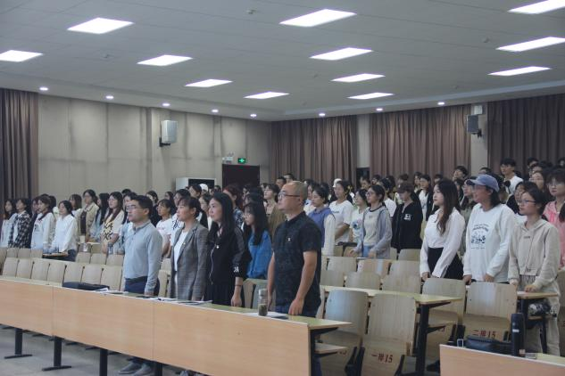 第七项,全体起立,奏国际歌。此次开班典礼在庄严的国际歌中圆满落幕。