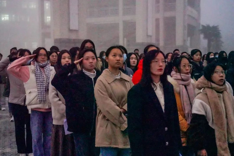 2023年11月27日6:30,威廉希尔WilliamHill官方网站升旗仪式在博学楼前举行,威廉希尔WilliamHill官方网站2023级全体本科生和辅导员老师李蝶参加了本次升旗仪式。
