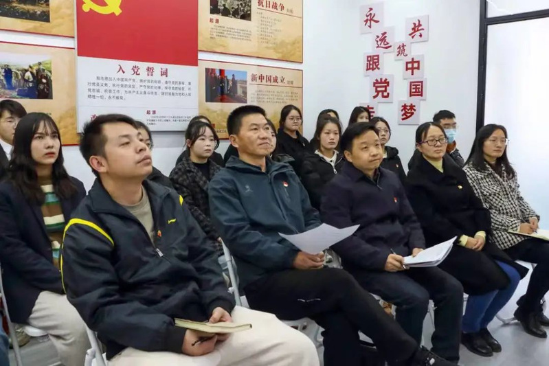在党支部书记何秀平同志的领誓下,所有参会同志举起右拳,庄严宣誓,表达对党的赤诚之心和为共产主义事业奋斗终身的拳拳初心。