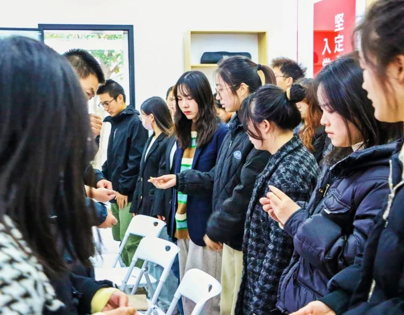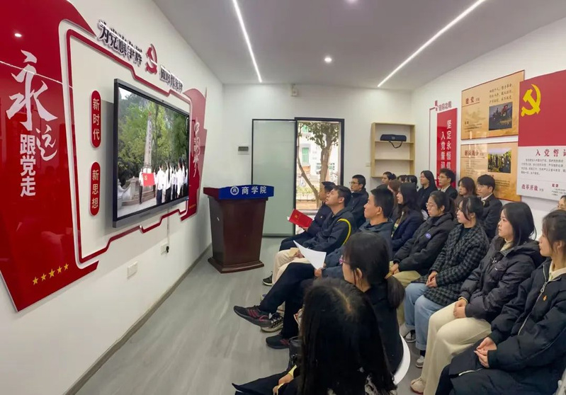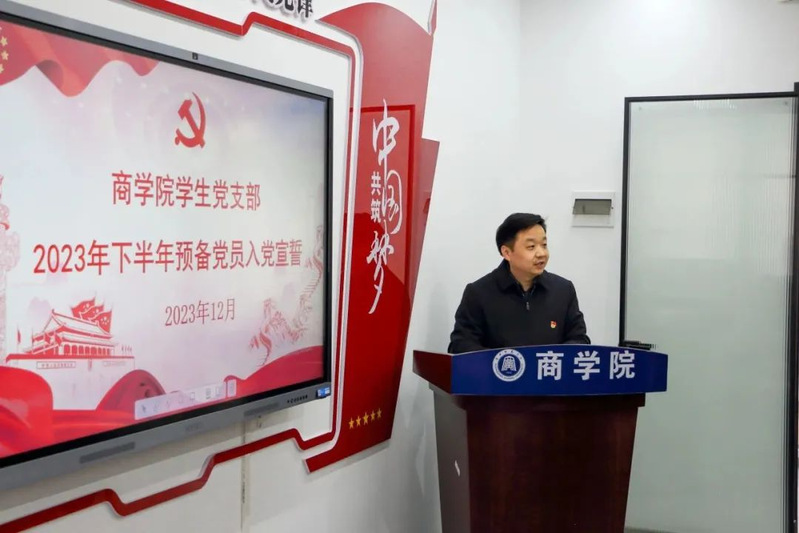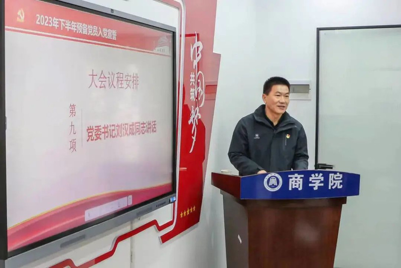 党委书记刘汉成等同志为2023年新吸收的预备党员发放党徽。