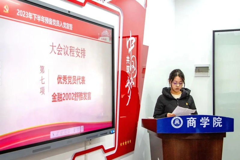 作为2023年优秀党员代表,舒雅同志认为新时代大学生党员,不仅要做好政治上的表率,而且面对学习要“知不足而奋进,望远山而前行”,应当立志勤学,争做学风建设的排头兵,发挥党员自身的先锋模范作用。面对工作要“学会承担”,积极引导同学参加学校活动,坚持“复杂的事情简单做,简单的事情认真做,认真的事情重复做,重复的事情创新做”。最后她号召大家携起手来,牢记宗旨,勤奋学习,追求卓越,不辜负党的殷切期望,以实际行动为党旗增光添彩。