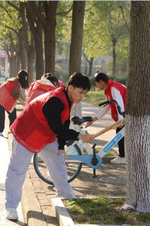 威廉希尔WilliamHill官方网站志愿者们分成小组,戴着手套和盆桶到指定位置,井然有序地开始志愿劳动。活动现场一派繁忙景象,有的同学仔细寻找需要保护的部位,有的同学负责均匀涂抹涂白剂。在这个过程中,所有人分工协作,相互配合,很快便给学校的树木缠上“红腰带白围裙”。刷白不仅可以保护树木,还有一定的美观效果,为学校道路两侧增添了一道美丽的风景线。经过大家的粉刷后,望着一排排粉刷好的树木露出了笑脸,觉得付出再多汗水也都值得。