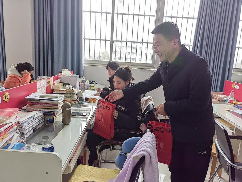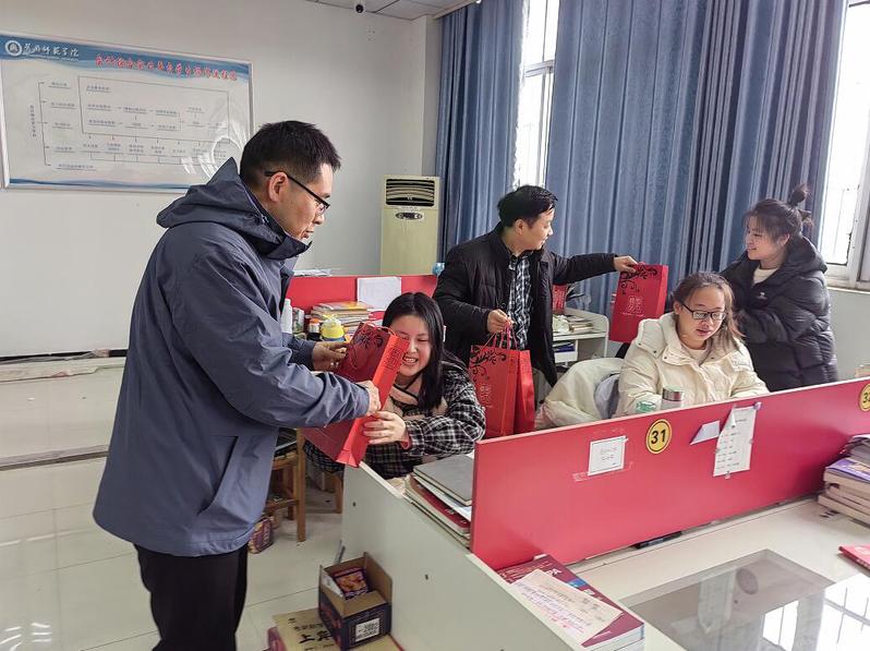 2024年全国硕士研究生入学考试在即,为调节考研学子的心理压力,鼓舞考研士气,坚定考研信心,12月11日上午10:00,学院党委书记刘汉成和院长王庆带领全体院领导和辅导员老师在实验室和图书馆开展了考研慰问活动,为考研的莘莘学子送去温暖和关爱。