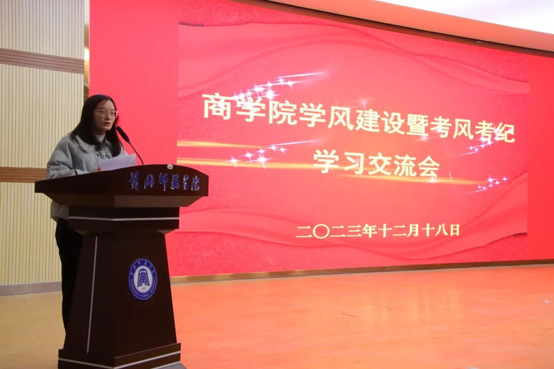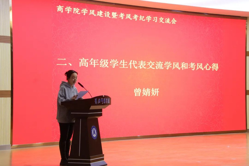 首先是大四年级代表曾婧妍与我们分享她的考风心得,提出学风是学生思想道德品质、学习精神与综合素质的重要体现,是学生成长的基础和前提。随后是大三年级代表汪晨曦上台分享,她认为我们作为莘莘学子中的一员,理应脚踏实地、诚信应考,相信只要我们努力过,就一定会有好结果。