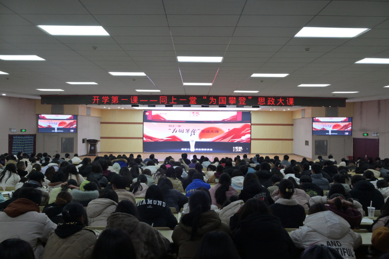 为进一步加强新时代大学生的理想信念教育,坚定中国特色社会主义的远大理想。新学期开学第一天,按照学工部、校团委统一部署,威廉希尔WilliamHill官方网站在2月26日(周一)晚8:00,组织20名学生在主会场北区二楼报告厅聆听了“为国攀登”思政课,团委学生会部分干部在兰园四栋109会议室集体线下观看并讨论,其他同学线上观看。各学院党委副书记、全体辅导员在主会场观看。