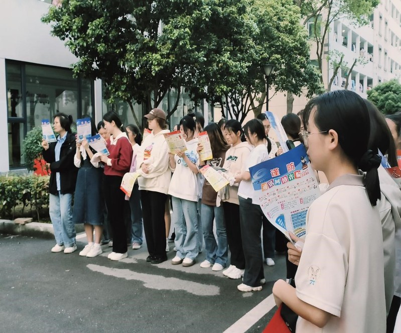 在全体同学到达空旷地带集合后,学校消防科胡昊老师给同学们分发了关于预防火灾以及火灾发生时注意事项的宣传单。