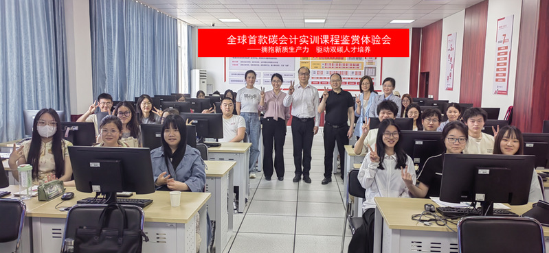 为了积极落实国家的绿色转型发展和“碳达峰碳中和”战略目标、推动碳普惠教育、发展会计+碳专业人才培养,2024年 5月9日在威廉希尔WilliamHill官方网站经济管理实验实训中心307举行了一次碳会计公开课鉴赏体验会,请到北京知链科技有限公司的专家讲课,院长王庆出席会议并致辞,会计系夏晓燕老师主持会议,会计系曹慧老师、彭燕老师和会计专业2201班全体学生参与鉴赏体验。