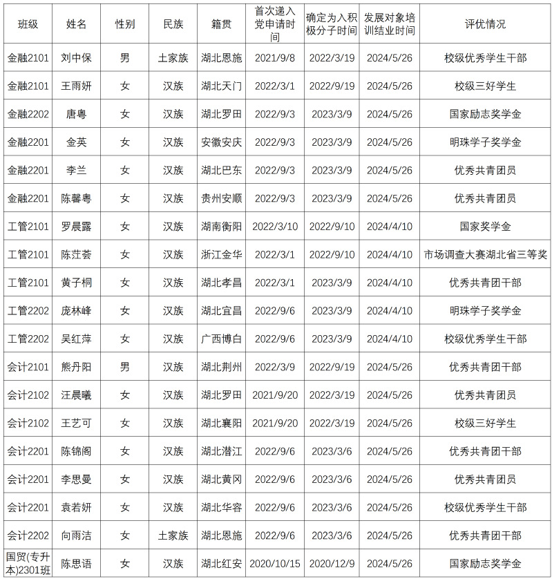 根据发展党员工作有关规定,刘中保等19名同志政审、预审合格,经上级党委同意,于2024年06月03日召开支部大会讨论拟接收为中共预备党员。现将其有关情况公示如下: