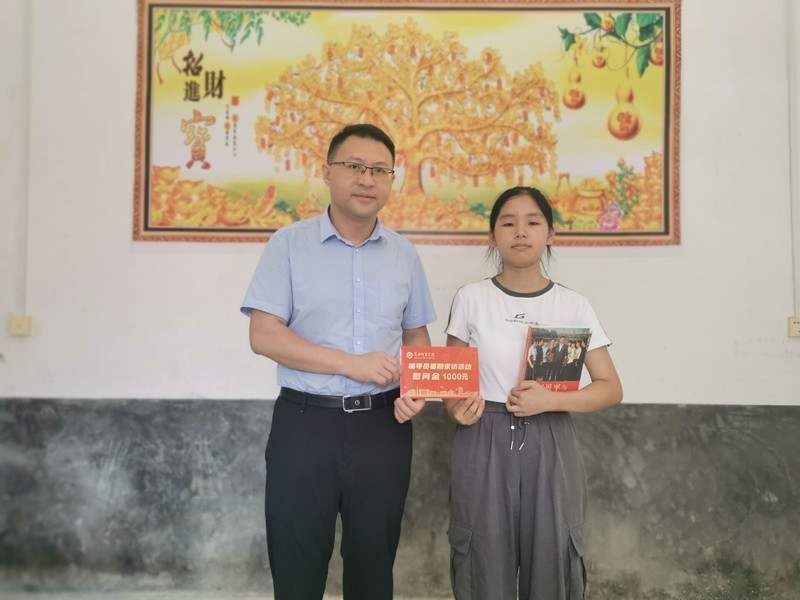 宋校长来到学生家后,与学生及其家人进行了深入交谈,详细了解了学生的家庭状况、学习生活、暑期安排和实际困难等情况,感谢家长对学校各项工作的支持和理解,鼓励学生要正视困难、磨砺意志,珍惜时光,练就本领,争取用知识改变自己和家庭的命运,并为学生带去了慰问金、学校文创产品,赠送了《习近平与大学生朋友们(第一、二卷)》、《活出心花怒放的人生》、《幸福的方法》等书籍。