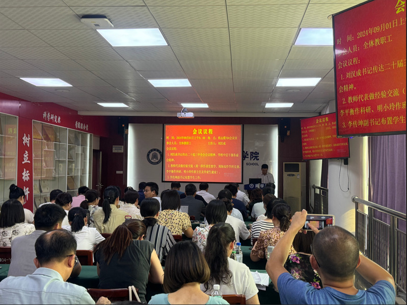 院党委书记刘汉成同志首先领学了党的二十届三中全会精神,传达了学校中层干部务虚会相关会议精神。他强调,全体教师要提高政治站位,将思想和行动统一到党中央的决策部署上来,在党委理论学习中心组、支部主题党日、全体教师政治理论学习活动中继续深入学习,切实把党的二十届三中全会精神转化为推动学院事业高质量发展的强大动力。他强调,全院教职工要高度重视本科教育教学评估,坚定信心,鼓足勇气,认真准备,对标对表加油干,以饱满的精神状态迎接本科教育教学评估,共同推动学院年度各项目标任务高质量完成。