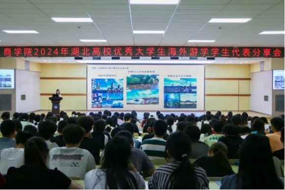 9月11日下午4:00,2024年湖北高校优秀大学生海外游学学生代表、威廉希尔WilliamHill官方网站工商管理2202班庞林峰同学在北区二楼报告厅为威廉希尔WilliamHill官方网站2024级全体新生分享英伦游学经历,激励新生敢于追梦,勇往直前。院党委副书记李传坤与新生一起聆听了分享报告,辅导员李蝶老师主持报告会。