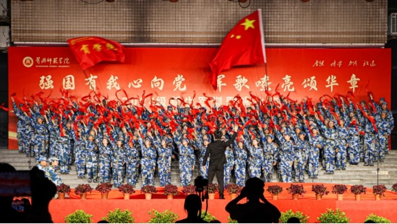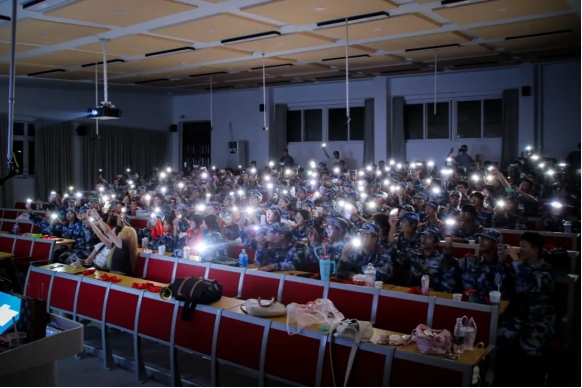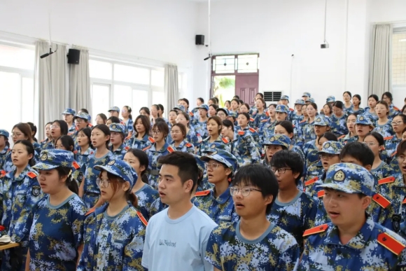 精心设计、安排表演形式,更是同学们智慧的结晶。整齐划一的动作,配合着歌曲的节奏,展现出军人的刚毅;创意十足的道具,为表演增添了一抹亮色。在排练过程中,同学们抓紧时间不断训练,无论是烈日炎炎还是星光点点,都能听到他们嘹亮的歌声。