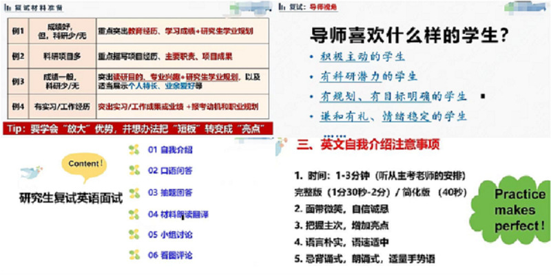 曹旻老师围绕复试流程、材料筹备、面试技巧、调剂要点等内容,并结合相关案例,为同学们详细讲解了很多有针对性的方法和技巧,让同学们受益匪浅。