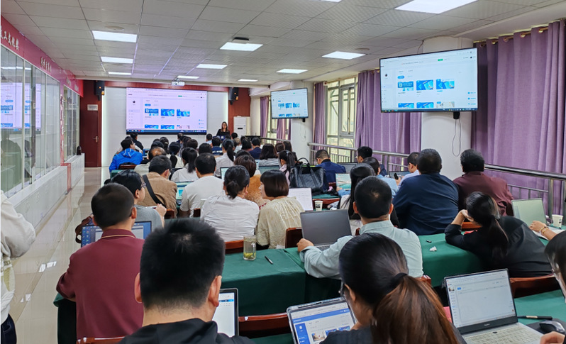 本次培训聚焦于超星智慧教学平台的核心功能与前沿应用,吴欣盈工程师系统讲解了知识图谱的构建方法及其在教学过程中的深度应用,演示了如何基于平台训练与部署课程智能体,以实现个性化学习支持与智能答疑。在“AI工作台教学增效实践”模块中,重点展示了如何利用人工智能工具辅助教学设计、作业批改、学情分析等环节,有效提升教学效率与精准性。培训过程中,教师们积极参与实操演练,深入交流智慧课程的设计思路与AI工具的教学融合方式,现场学习氛围浓厚。